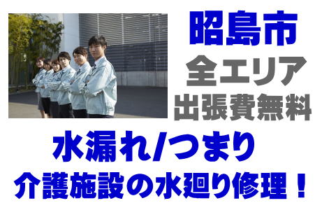 / 昭島市福祉施設シャワー修理 / 昭島市介護施設シンク水漏れ / 昭島市特別養護老人ホーム蛇口水漏れ / 昭島市老健施設排水パイプつまり /