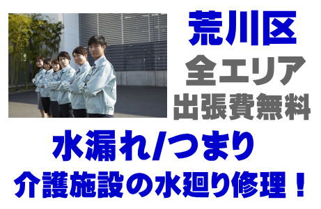 / 荒川区福祉施設シャワー修理 / 荒川区介護施設シンク水漏れ / 荒川区特別養護老人ホーム蛇口水漏れ / 荒川区老健施設排水パイプつまり /