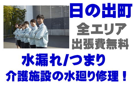 / 日の出町老人ホームシンク水漏れ / 日の出町高齢者施設蛇口水漏れ / 日の出町介護医療院ポンプ交換 / 日の出町デイサービス排水パイプつまり