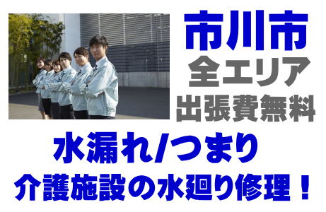 / 市川市福祉施設シャワー修理 / 市川市介護施設シンク水漏れ / 市川市特別養護老人ホーム蛇口水漏れ / 市川市老健施設排水パイプつまり /