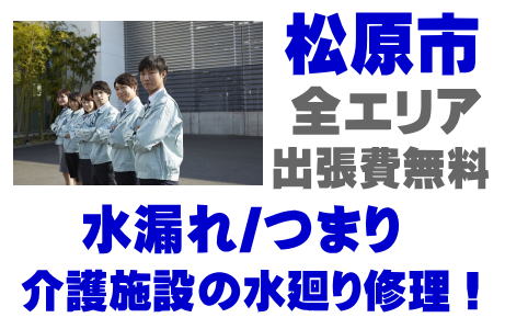 / 松原市福祉施設シャワー修理 / 松原市介護施設シンク水漏れ / 松原市特別養護老人ホーム蛇口水漏れ / 松原市老健施設排水パイプつまり /
