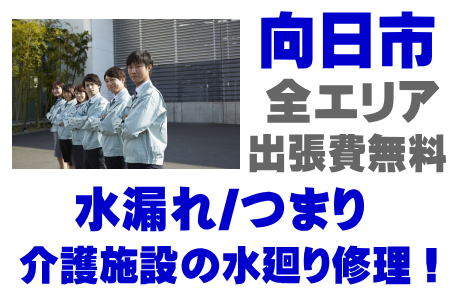 / 向日市福祉施設シャワー修理 / 向日市介護施設シンク水漏れ / 向日市特別養護老人ホーム蛇口水漏れ / 向日市老健施設排水パイプつまり /