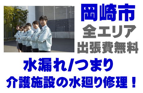 / 岡崎市福祉施設シャワー修理 / 岡崎市介護施設シンク水漏れ / 岡崎市特別養護老人ホーム蛇口水漏れ / 岡崎市老健施設排水パイプつまり /