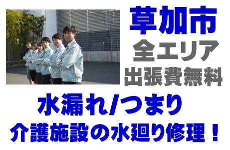 / 草加市サ高住止水栓交換 / 草加市老健施設排水管清掃 / 草加市特養施設水道工事業者 / 草加市介護施設水道修理店 / 草加市高齢者住宅シンクパイプ修理