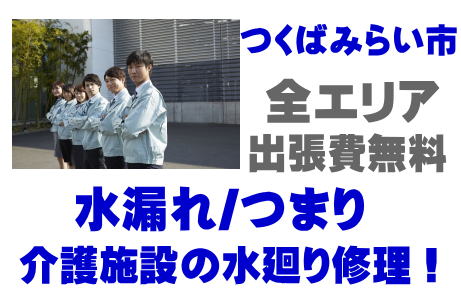 / つくばみらい市老人ホームシンク水漏れ / つくばみらい市高齢者施設蛇口水漏れ / つくばみらい市介護医療院ポンプ交換 / つくばみらい市デイサービス排水パイプつまり