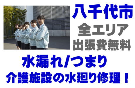 / 八千代市老人ホームシンク水漏れ / 八千代市高齢者施設蛇口水漏れ / 八千代市介護医療院ポンプ交換 / 八千代市デイサービス排水パイプつまり