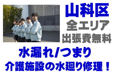 / 山科区福祉施設シャワー修理 / 山科区介護施設シンク水漏れ / 山科区特別養護老人ホーム蛇口水漏れ / 山科区老健施設排水パイプつまり /