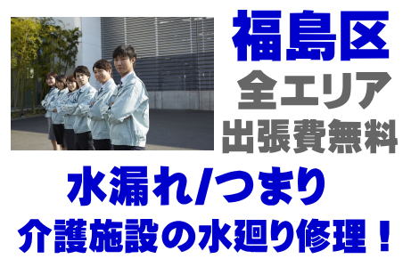 / 福島区福祉施設シャワー修理 / 福島区介護施設シンク水漏れ / 福島区特別養護老人ホーム蛇口水漏れ / 福島区老健施設排水パイプつまり /