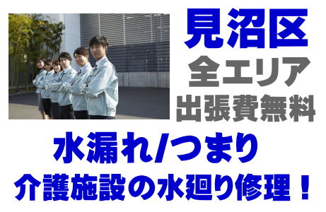/ 見沼区福祉施設シャワー修理 / 見沼区介護施設シンク水漏れ / 見沼区特別養護老人ホーム蛇口水漏れ / 見沼区老健施設排水パイプつまり /