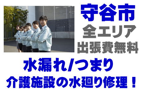 / 守谷市福祉施設シャワー修理 / 守谷市介護施設シンク水漏れ / 守谷市特別養護老人ホーム蛇口水漏れ / 守谷市老健施設排水パイプつまり /