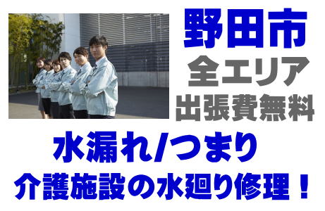 / 野田市福祉施設シャワー修理 / 野田市介護施設シンク水漏れ / 野田市特別養護老人ホーム蛇口水漏れ / 野田市老健施設排水パイプつまり /
