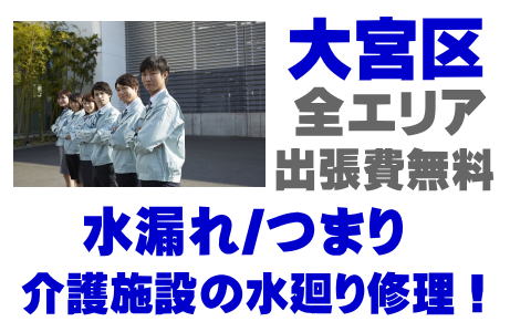 / 大宮区福祉施設シャワー修理 / 大宮区介護施設シンク水漏れ / 大宮区特別養護老人ホーム蛇口水漏れ / 大宮区老健施設排水パイプつまり /