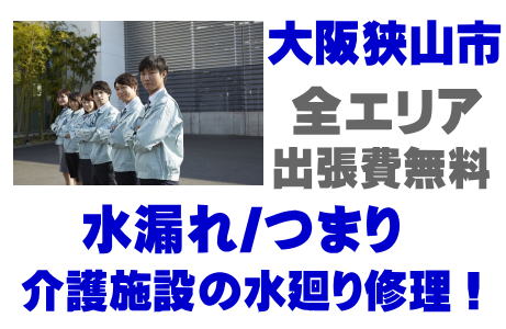 / 大阪狭山市老人ホームシンク水漏れ / 大阪狭山市高齢者施設蛇口水漏れ / 大阪狭山市介護医療院ポンプ交換 / 大阪狭山市デイサービス排水パイプつまり