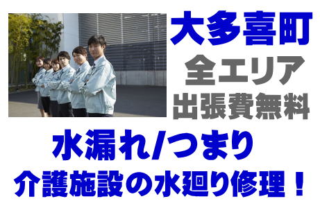 / 大多喜町老人ホームシンク水漏れ / 大多喜町高齢者施設蛇口水漏れ / 大多喜町介護医療院ポンプ交換 / 大多喜町デイサービス排水パイプつまり