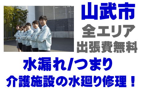 / 山武市介護医療院ポンプ交換 / 山武市デイサービス排水パイプつまり / 山武市デイケア給湯器修理 / 山武市介護施設水圧低下 / 山武市グルホ排水溝つまり