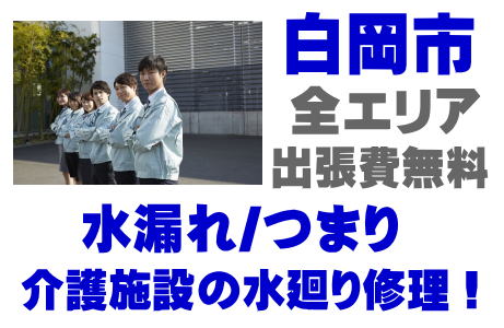 / 白岡市福祉施設シャワー修理 / 白岡市介護施設シンク水漏れ / 白岡市特別養護老人ホーム蛇口水漏れ / 白岡市老健施設排水パイプつまり /