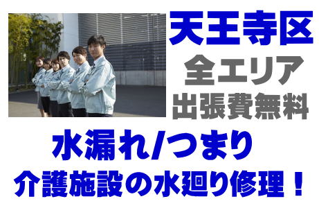 / 天王寺区老人ホームシンク水漏れ / 天王寺区高齢者施設蛇口水漏れ / 天王寺区介護医療院ポンプ交換 / 天王寺区デイサービス排水パイプつまり